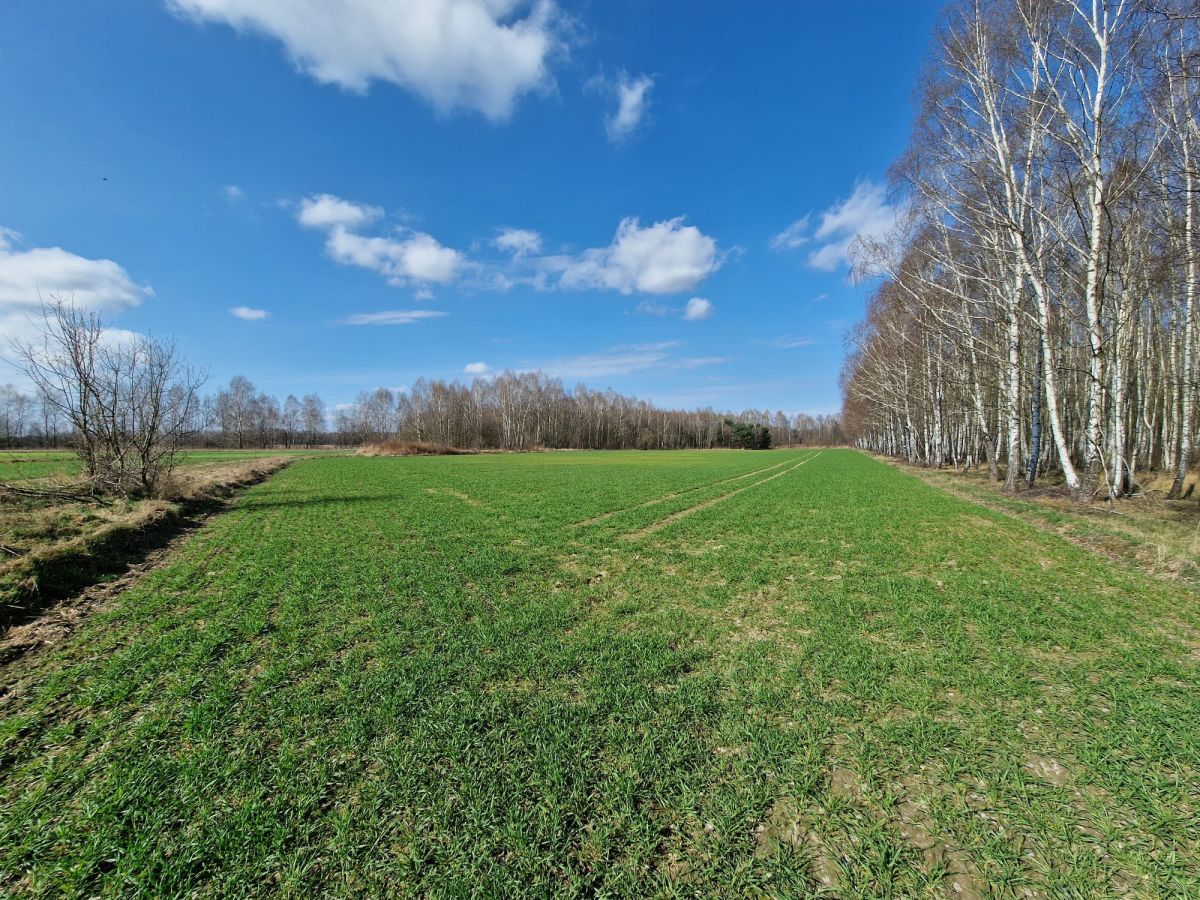 Szerokość frontowa działki ok. 71 m, płaska, z dostępem do drogi gruntowej.