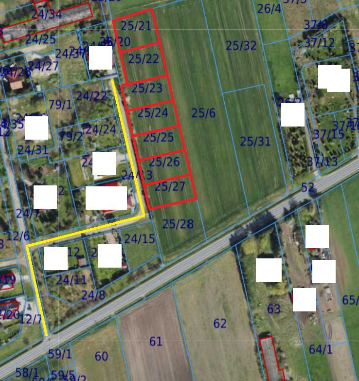 Przybliżone wymiary działek: 22x42 oraz 28x35.