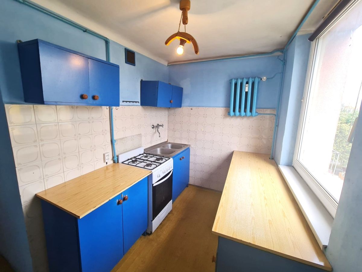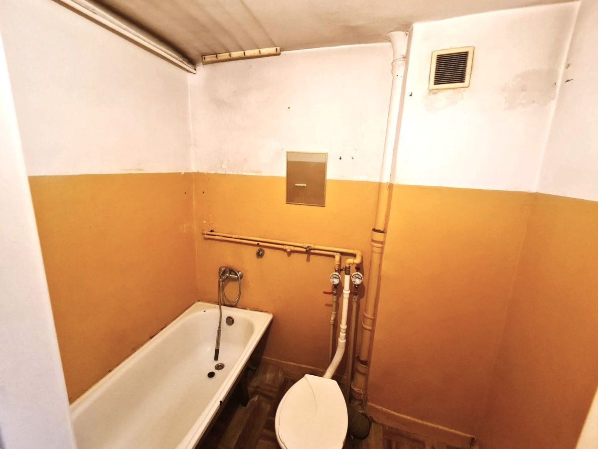 Mieszkanie przeznaczone do remontu. Możliwość przearanżowania układu pomieszczeń i stworzenie większej sypialni lub kuchni otwartej na salon.